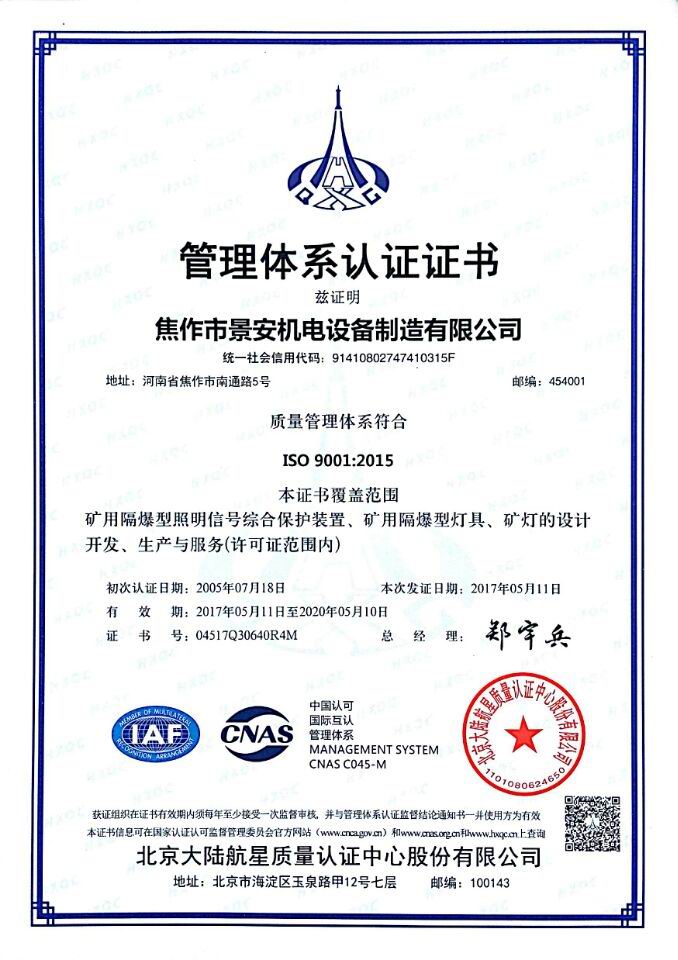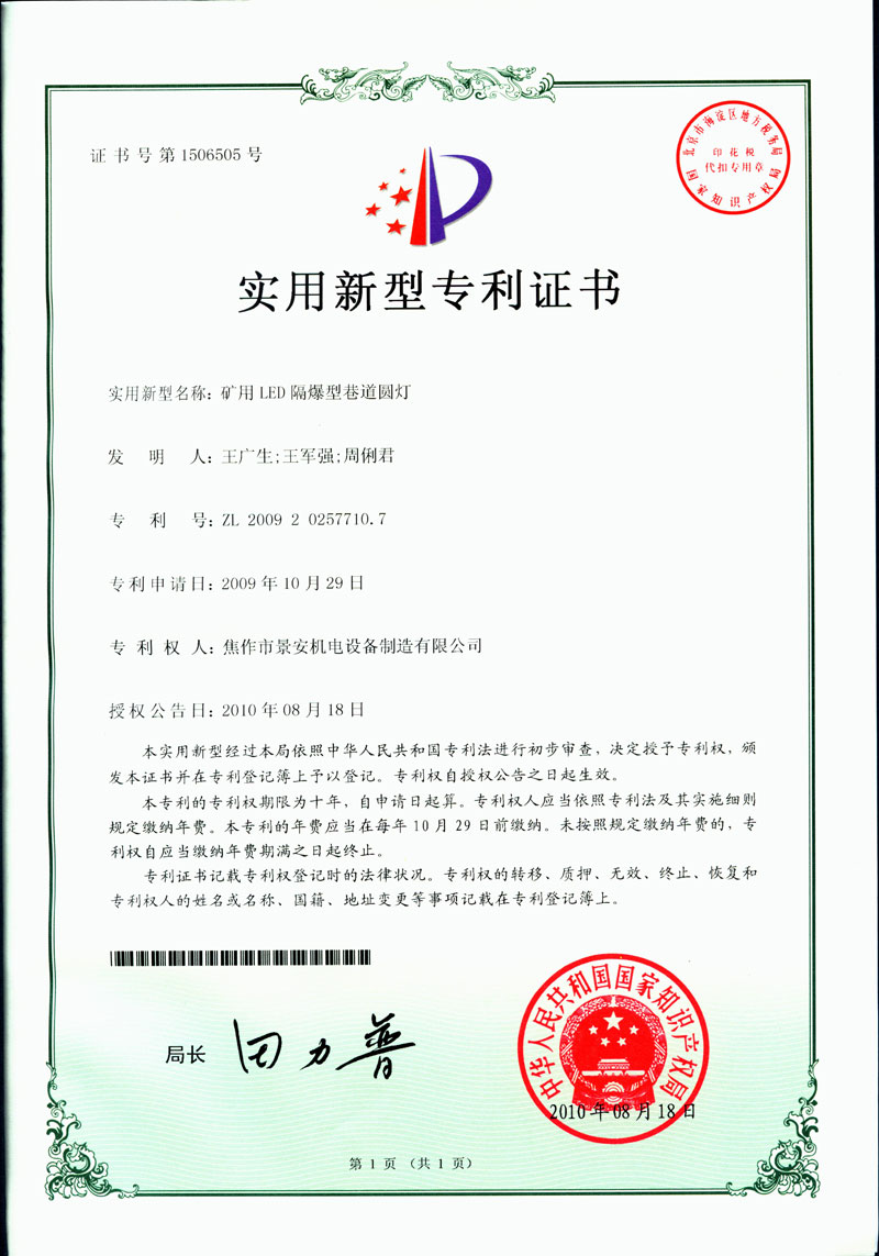 焦作景安公司始終堅持“以科技為先導,以市場為導向”的發(fā)展戰(zhàn)略,不斷進行新產(chǎn)品的研制和開發(fā),在國家“六五”到“九五”期間,承擔和參與了國家多項科技攻關項目,產(chǎn)品的技術和質(zhì)量一直處于全國同行業(yè)領先位置。并被中國電器工業(yè)協(xié)會評定為“質(zhì)量可信產(chǎn)品”。特別是在礦用防爆燈領域,礦用隔爆型半導體(LED)照明燈具,2008年列入國家火炬計劃,獲2009年河南省工業(yè)和信息化廳的科技成果二等獎,并擁有多項國家專利。 |